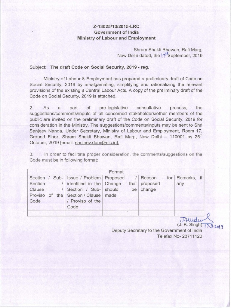Draft Code on Social Security, 2019 | PDF | Lease | Employment