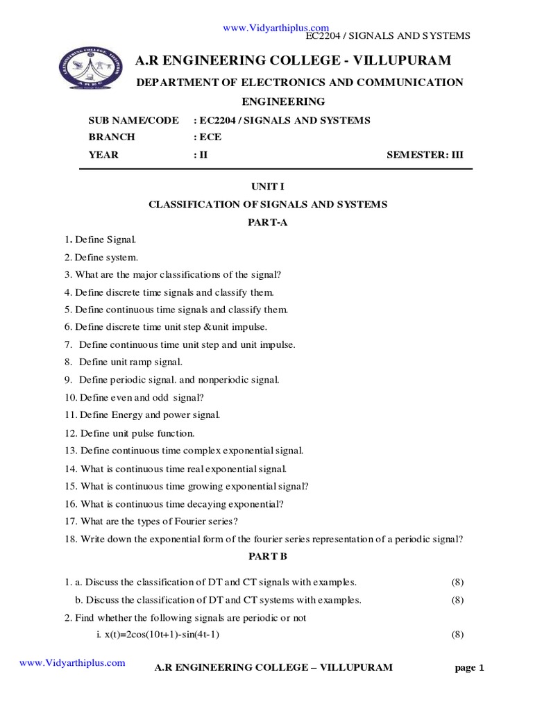 SS - Question Bank 19-20 | PDF | Discrete Time And Continuous Time ...