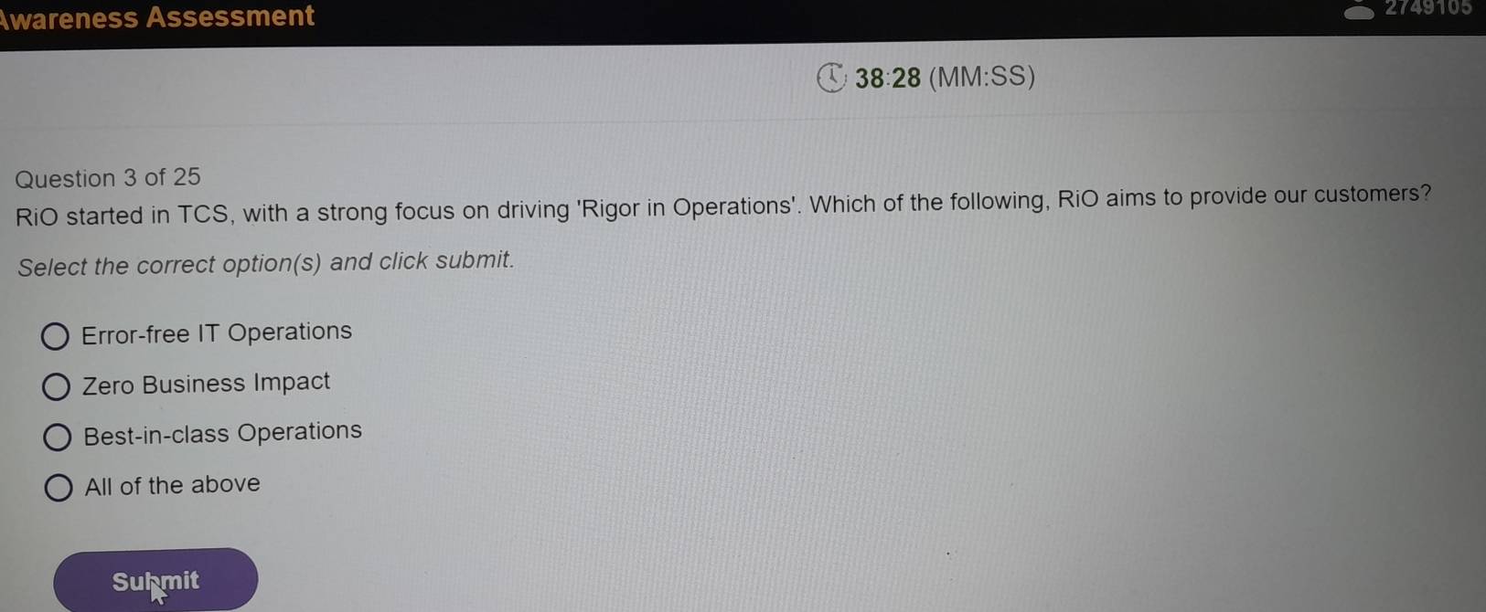 Solved: Awareness Assessment 2749105 38:28 (MM:SS) Question 3 of 25 RiO ...