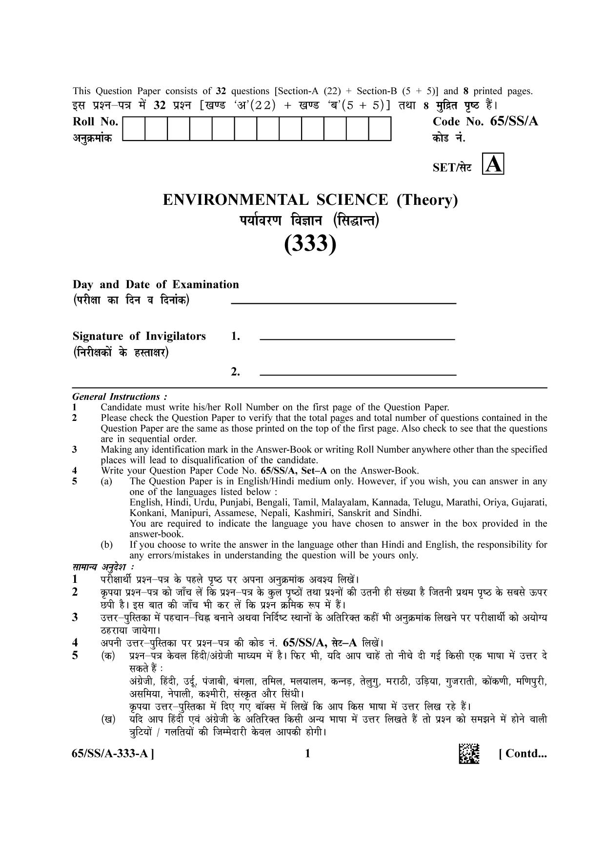 NIOS 2023 Class 12 Environmental Science (SS) Question Paper ...