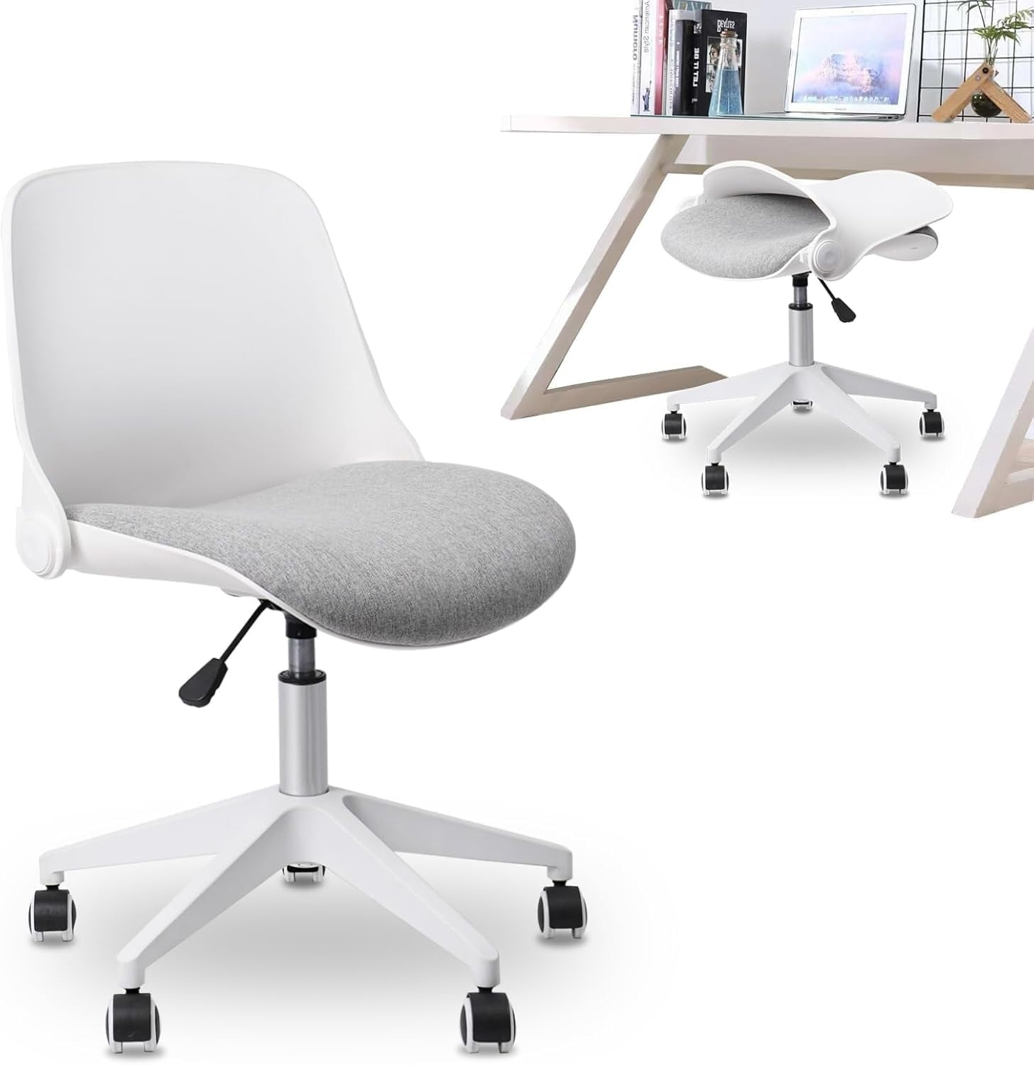 SSB Armless Office Desk Chair with Wheels,Faux Leather Cross Legged ...