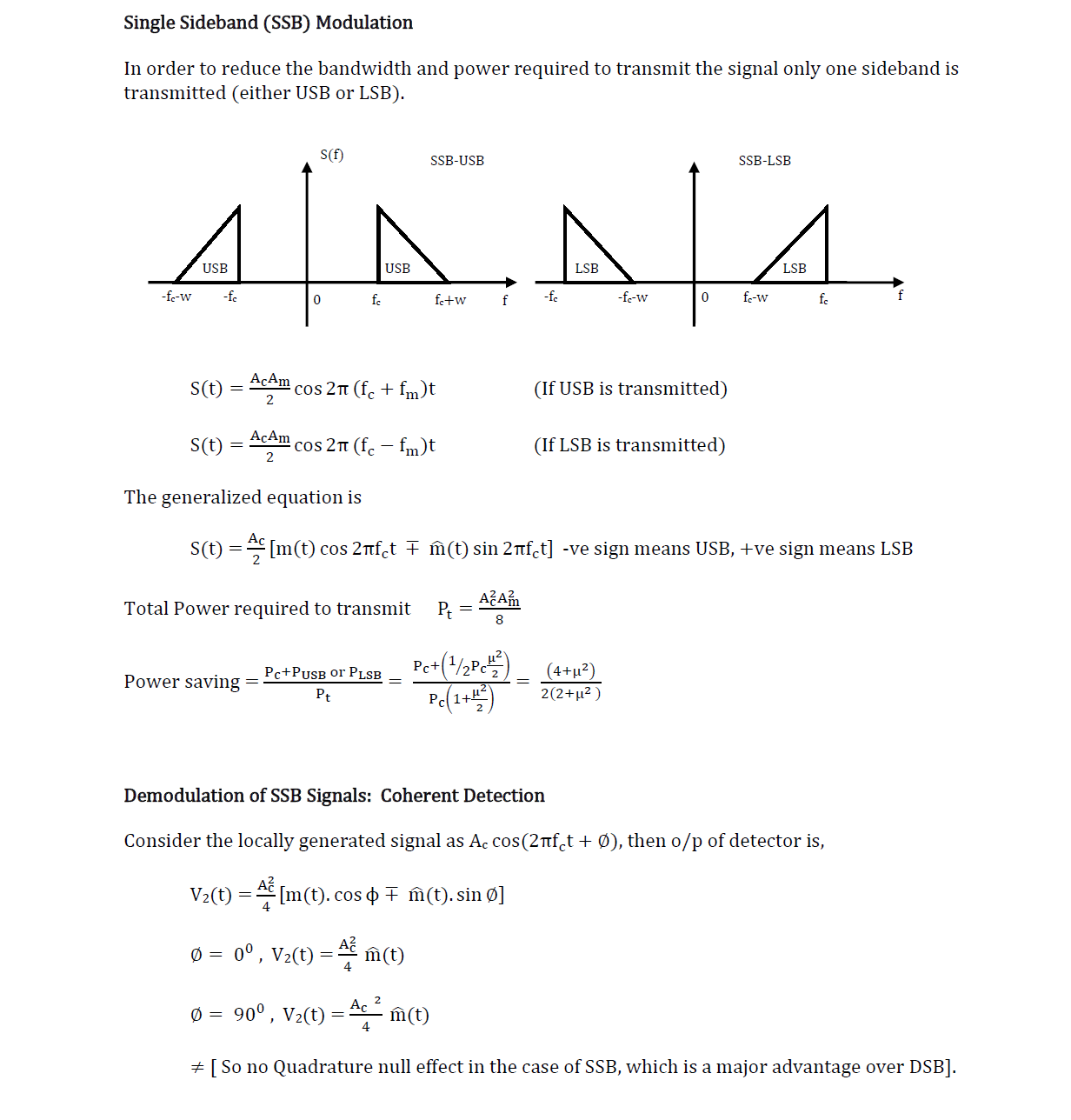 SSB-SC Notes | PDF | Bandwidth (Signal Processing) | Electricity