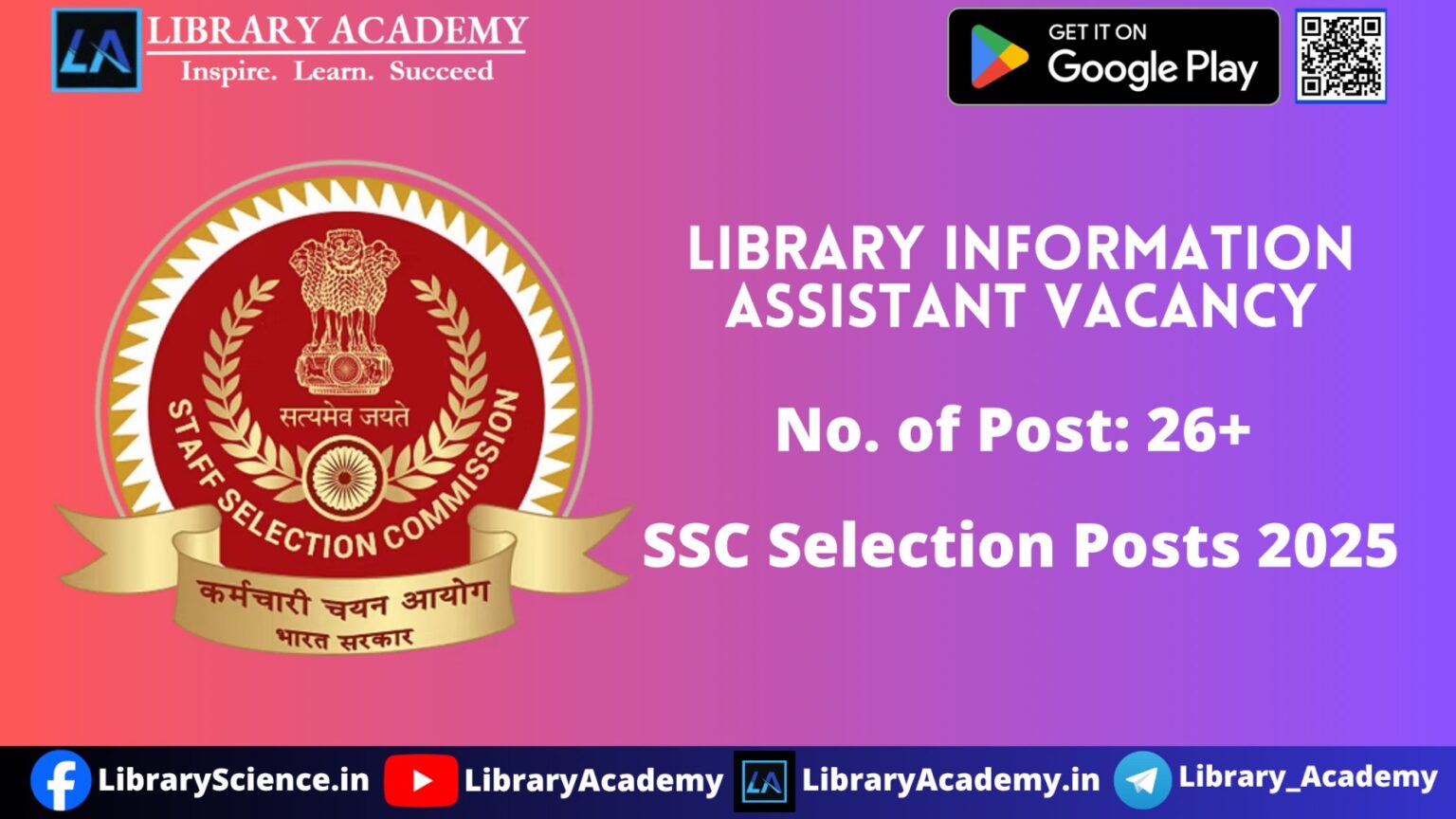 Library Information Assistant for 26 Vacancy by SSC Selection Posts 2025