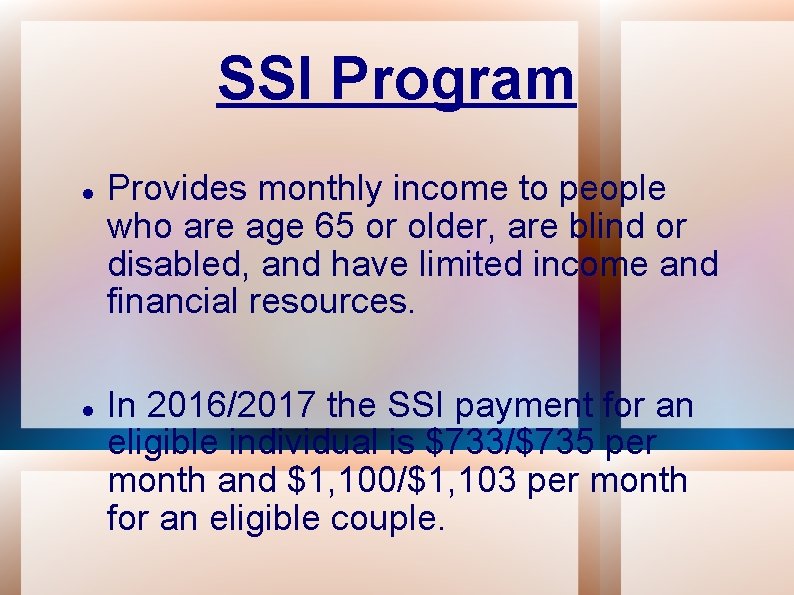 PPT - Overview of the Supplemental Security Income (SSI) program ...