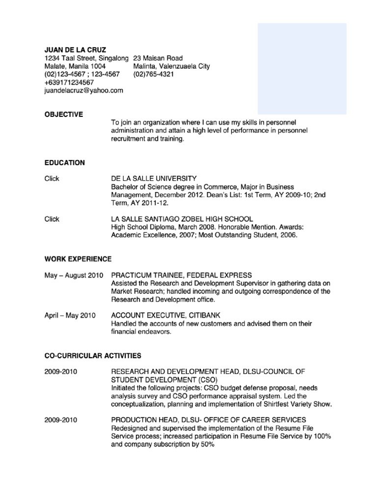 Resume CV DLSU Template | PDF
