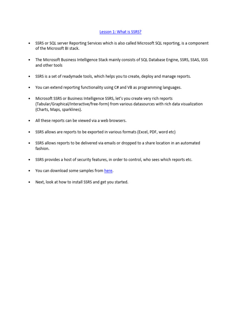 Sql server reporting services (SSRS) | PDF