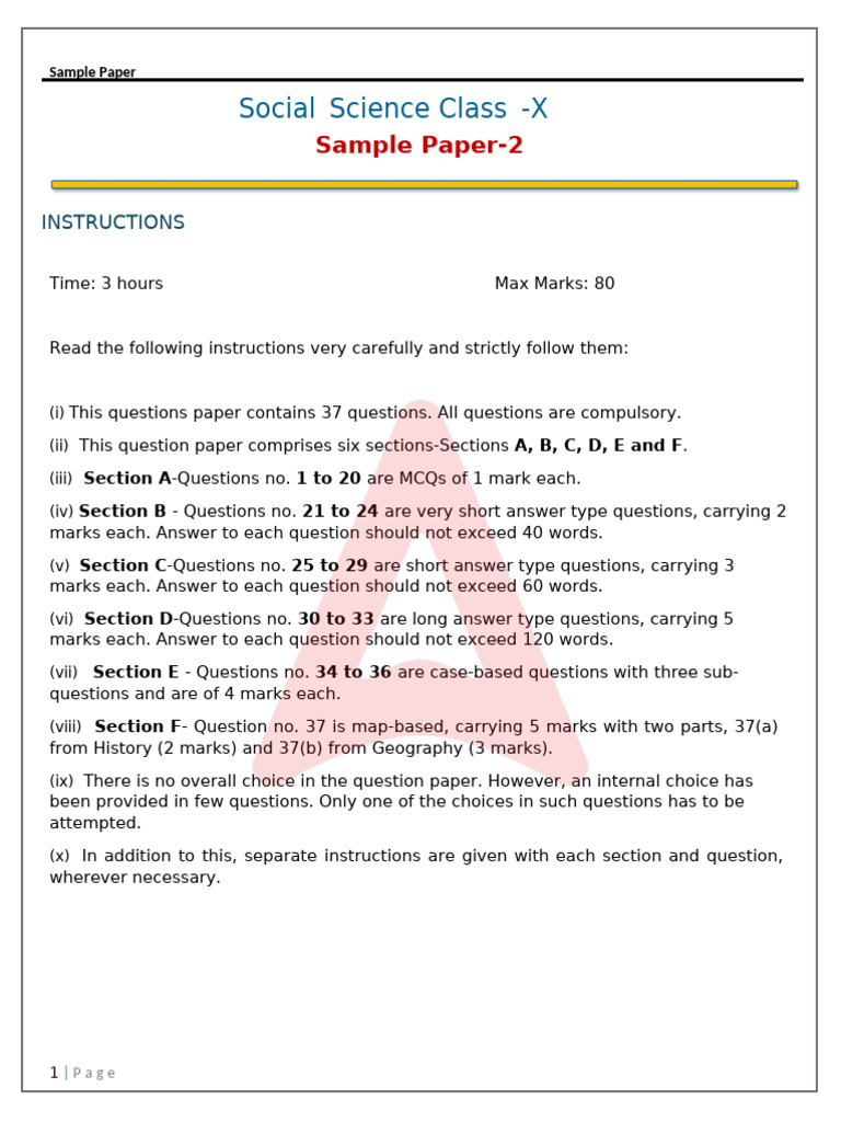 SST Sample Paper 1 | PDF