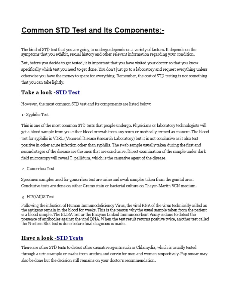 Common STD Test and Its Components | PDF