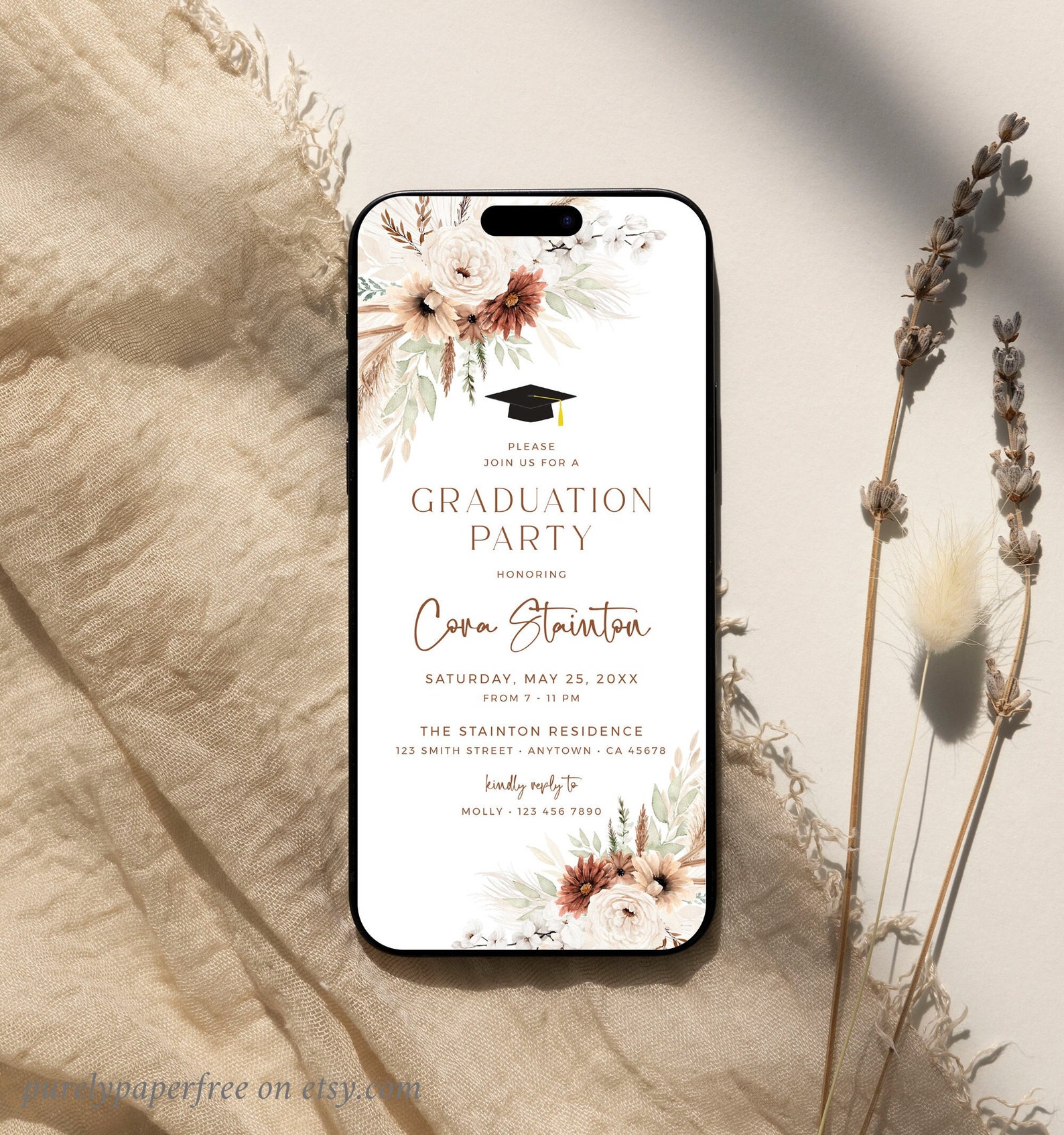 Graduation Party Invitation Digital, Boho Grad Party Invite Text ...