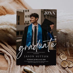 Graduation Photo Invitation Printable Template Announcement | Guy ...