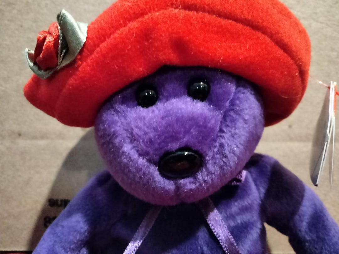 Ty Beanie Babies Ruby the Purple Bear With Red Hat With Flower on Brim ...