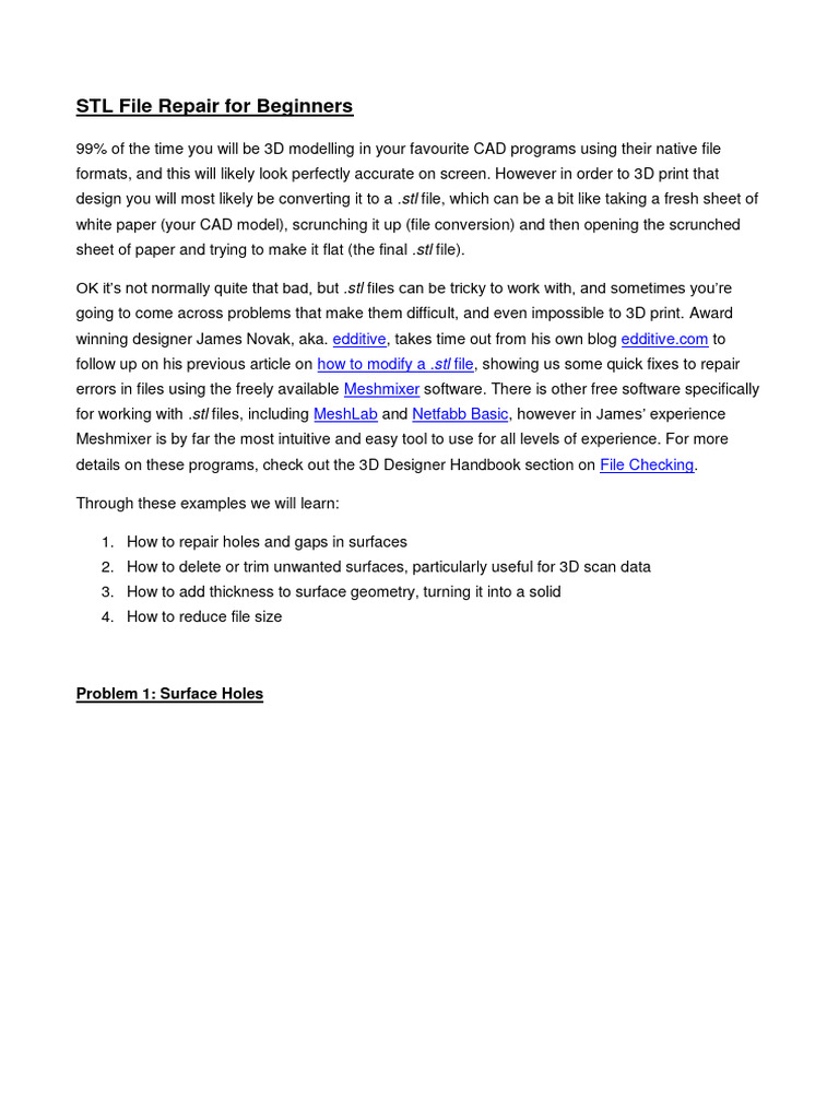Beginner's Guide to STL File Repair | PDF | 3 D Computer Graphics | 3 D ...