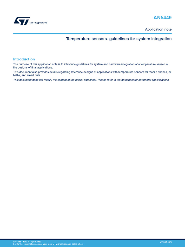 Dm00685154 Temperature Sensors Guidelines For System Integration ...