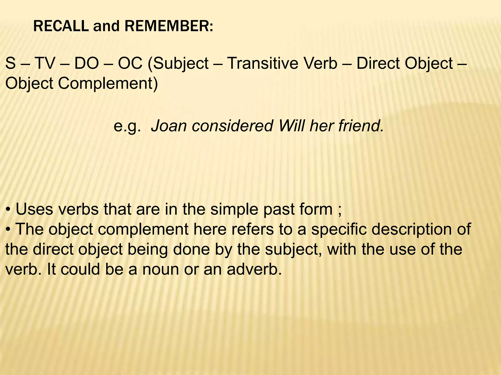 Sentence Pattern Two: Subject–Verb–Direct Object (S-V-DO) / sentence ...