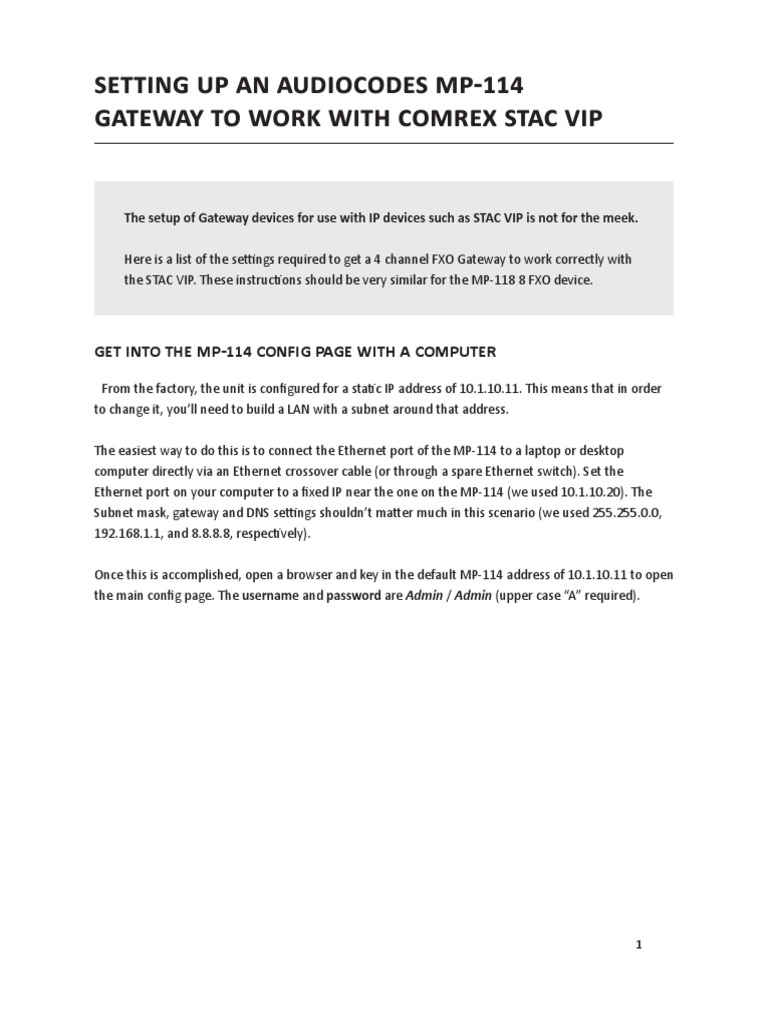MP-114 Configuration for STAC VIP | PDF | Gateway (Telecommunications ...