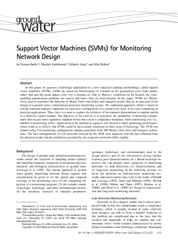 (PDF) Support vector machines (SVMs) for monitoring network design
