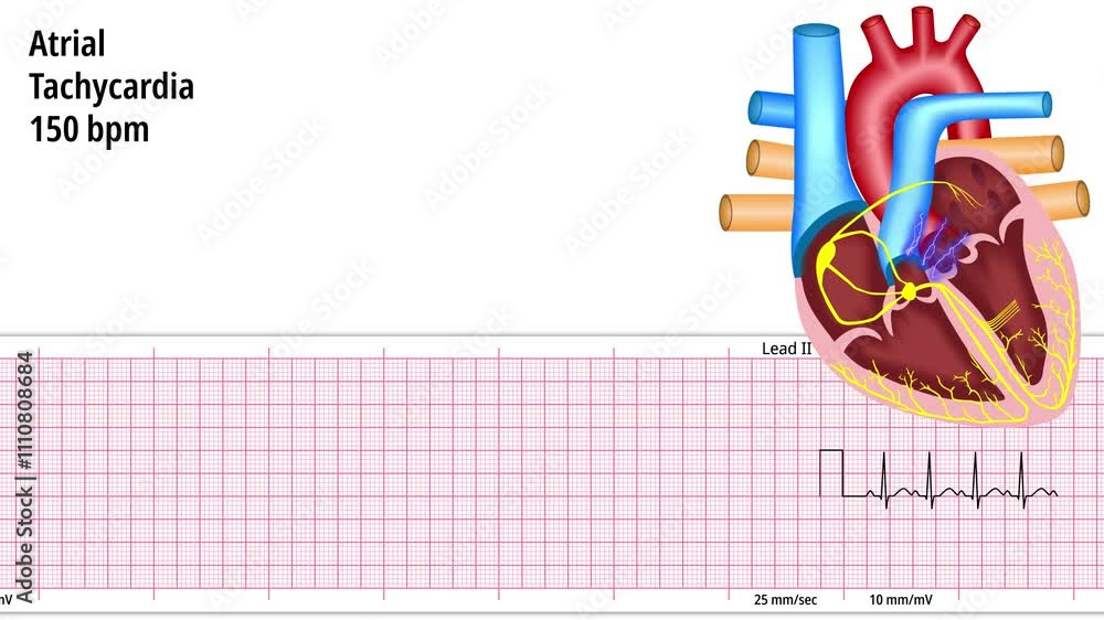 Atrial Tachycardia 150 bpm - Supraventricular - ECG and Heart ...