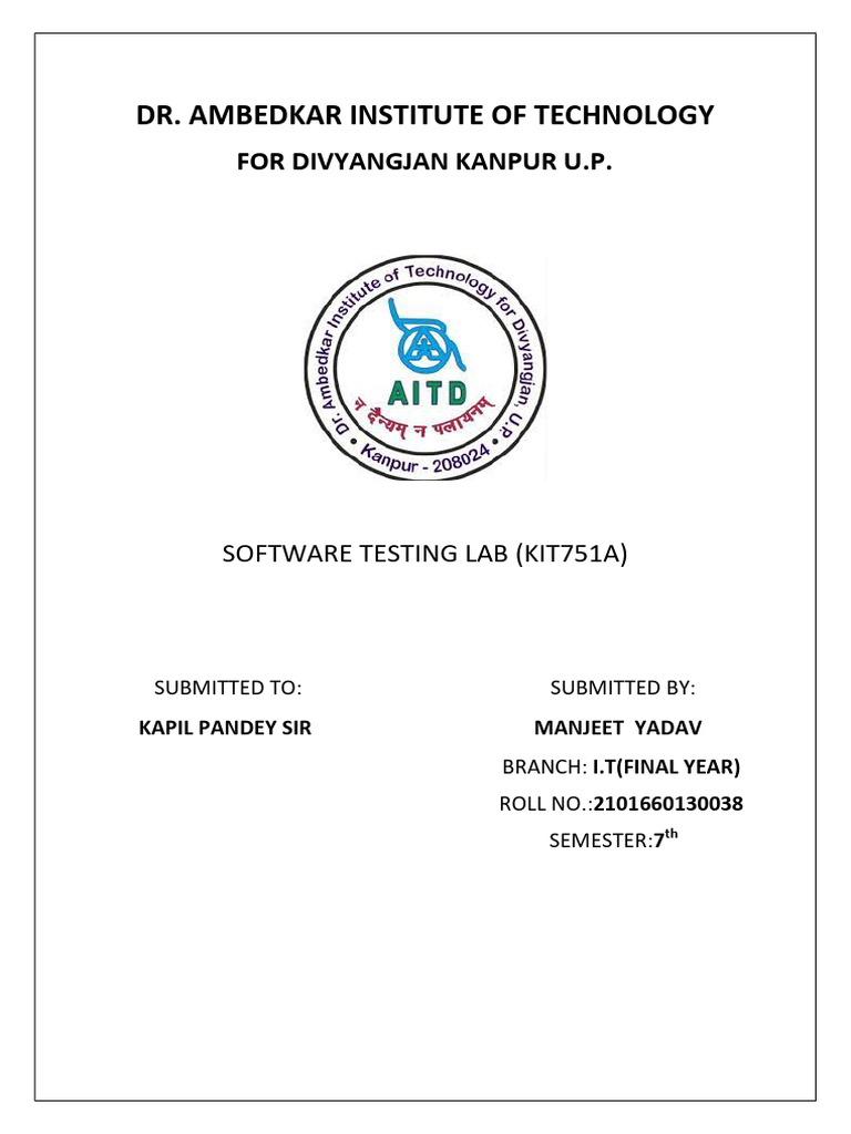 Software Testing Lab Report - Dr. Ambedkar Institute | PDF