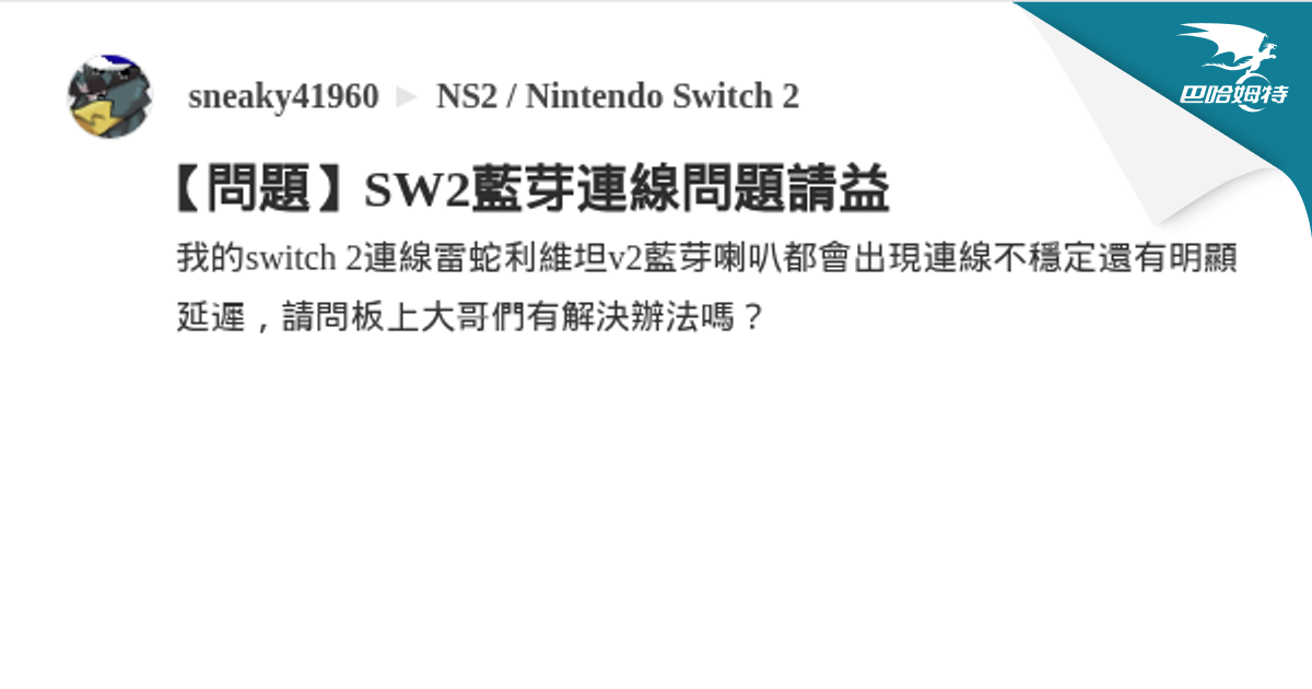 【問題】SW2藍芽連線問題請益 @NS2 / Nintendo Switch 2 哈啦板 - 巴哈姆特