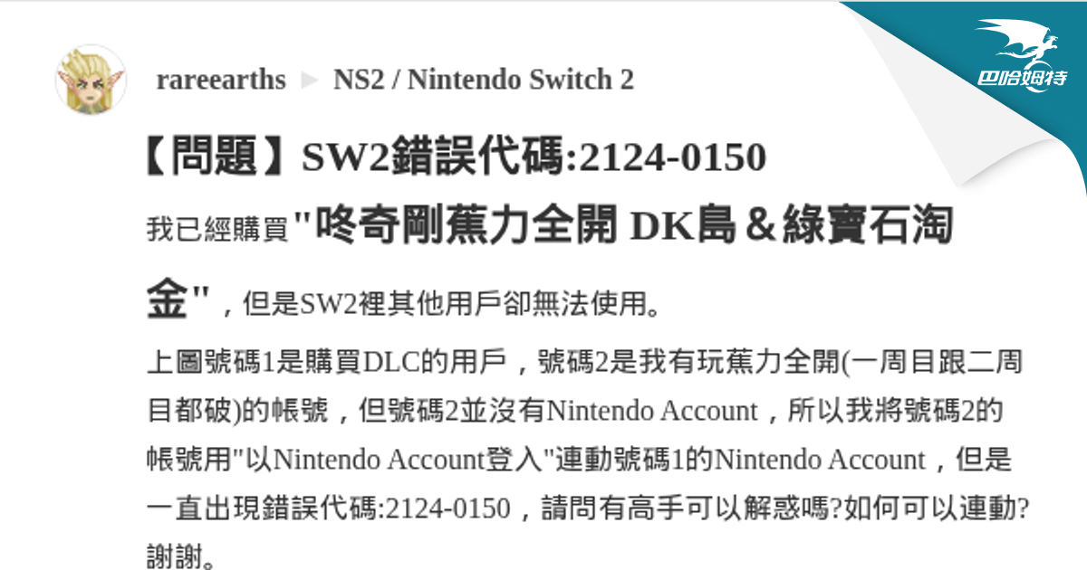 【問題】SW2錯誤代碼:2124-0150 @NS2 / Nintendo Switch 2 哈啦板 - 巴哈姆特