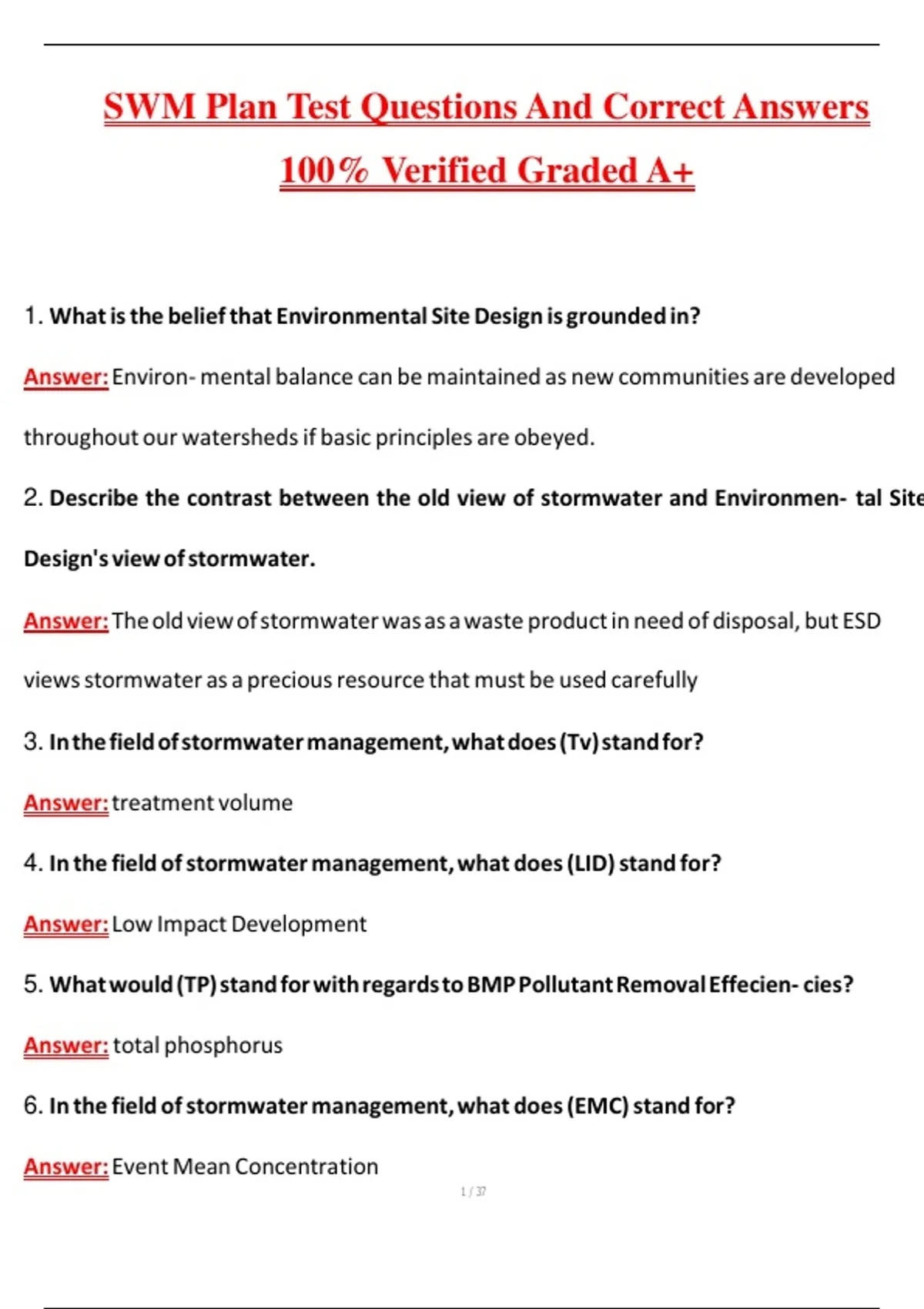 SWM Plan Test Questions And Correct Answers - SWM DEQ - Stuvia US