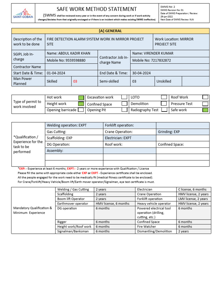 Example Of Completed Swms Fill Online, Printable, Fillable,, 47% OFF