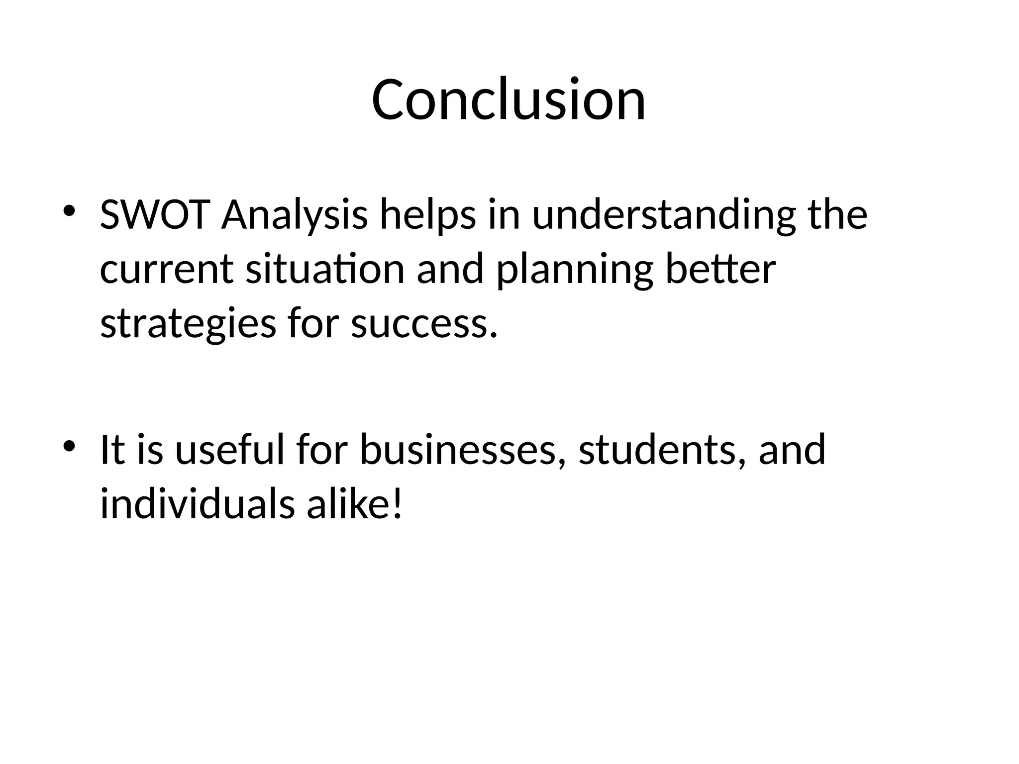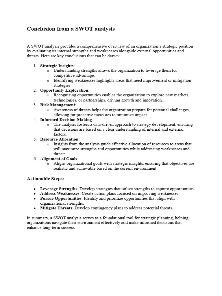 Conclusion From A SWOT Analysis: Strategic Insights | PDF