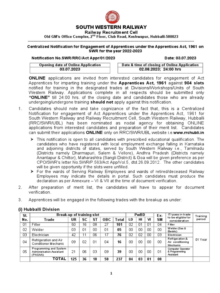SWR - Act Apprentice Notification-2022 | PDF | Debit Card | Disability