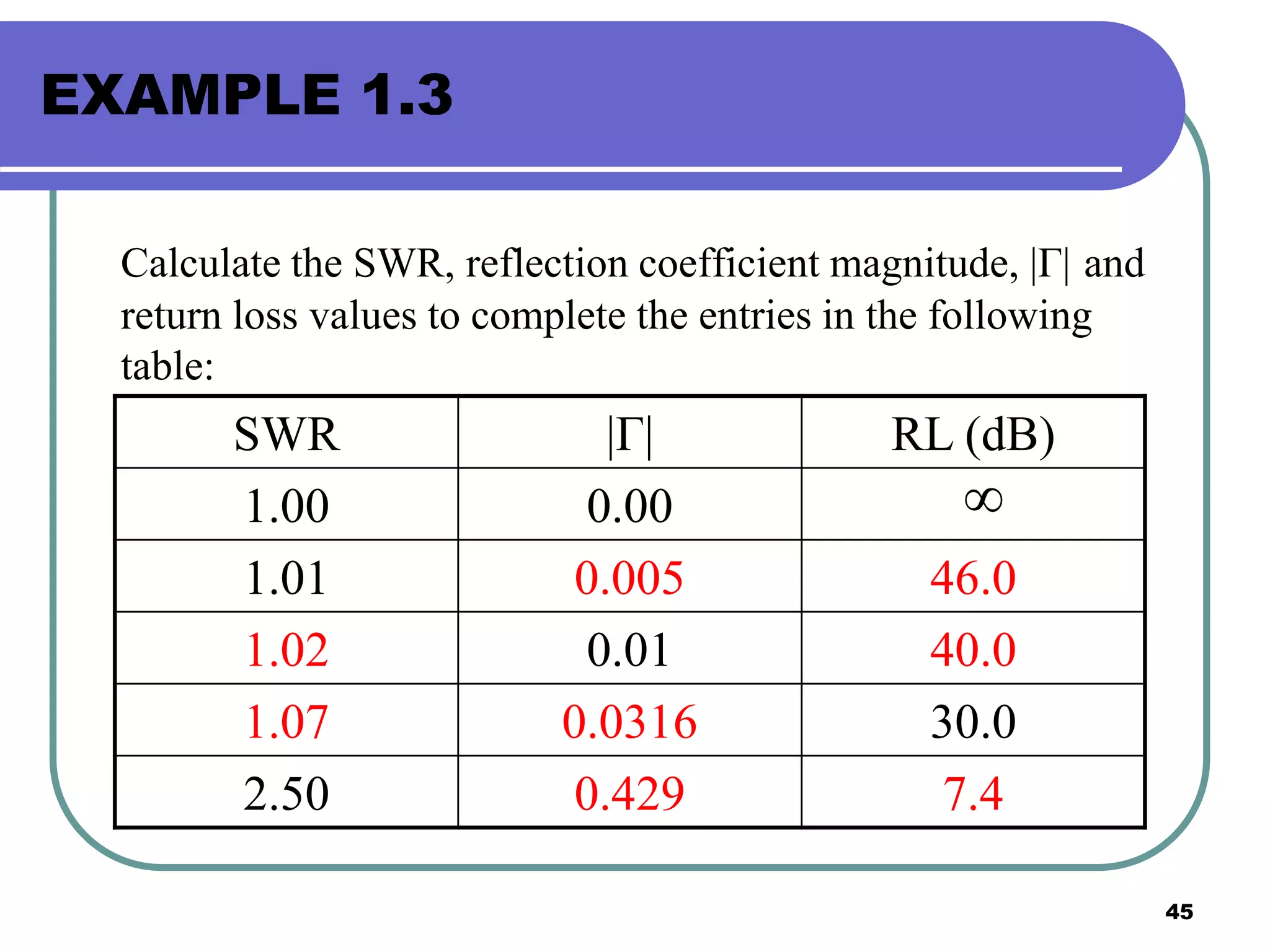 Conversion Charts for Return Loss, VSWR, Reflection Coefficient and Mis ...