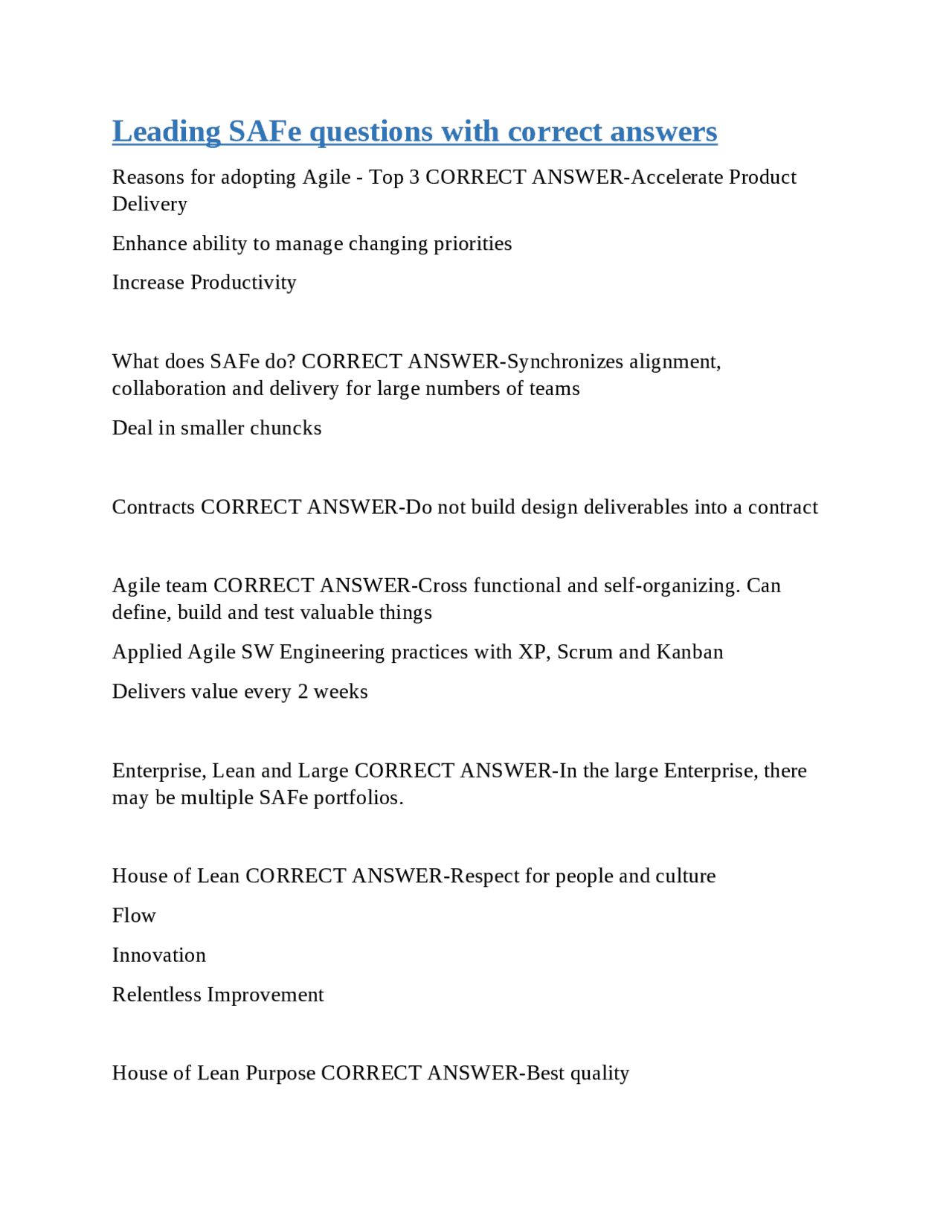 Questions and Answers > DevOps-SAFe-Questions & Answers 2022 Exams ...