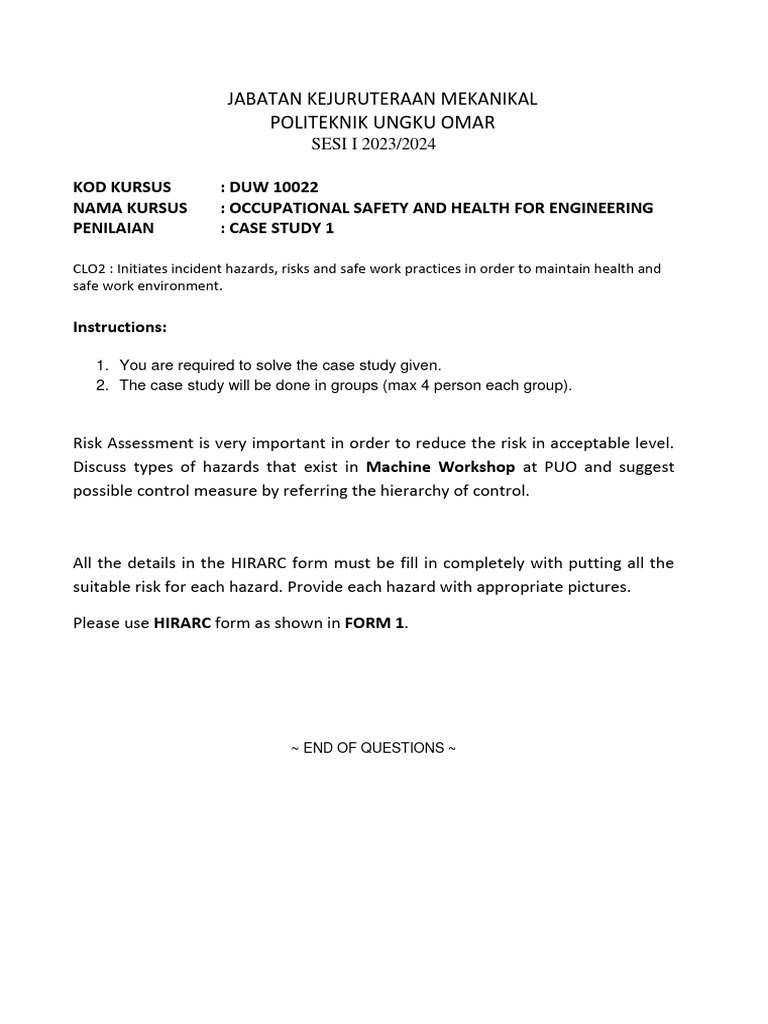 case study safety management umt.pdf | Injuries | Diseases and Conditions