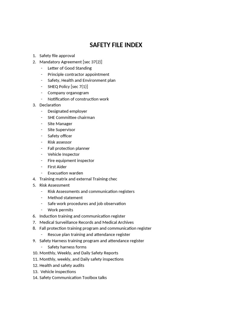 Safety File Checklist PDF | Download Free PDF | Occupational Safety And ...