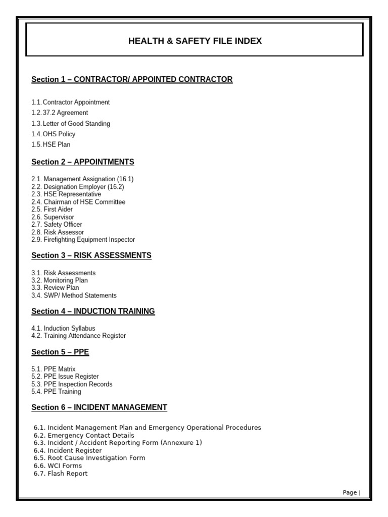 Health & Safety File Checklist | PDF | Occupational Safety And Health ...