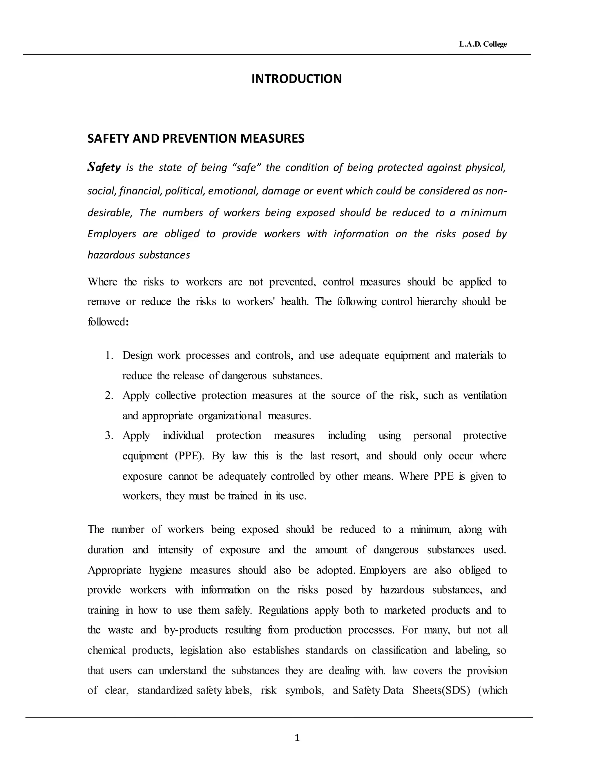 introduction to health and safety.