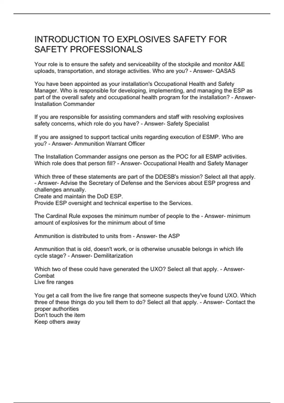 INTRODUCTION TO EXPLOSIVES SAFETY FOR SAFETY PROFESSIONALS ...