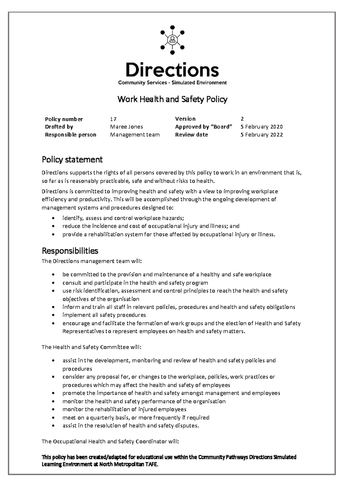 Work Health and Safety Policy & Procedures (Community Pathways) - Studocu