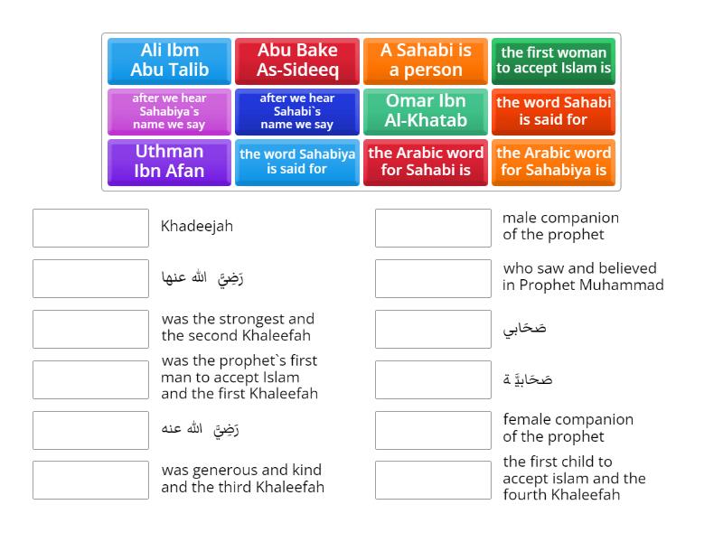 Sahaba, friends/ companians of the Prophet - Match up