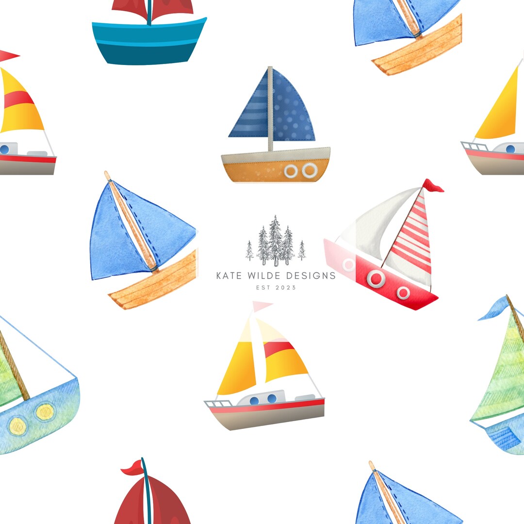 Watercolor Sailboat Pattern, Seamless Pattern Kid, Repeat Digital ...