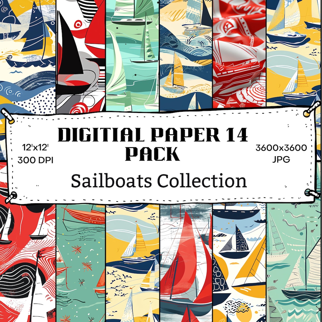 Sailboat Themed Seamless Patterns - 14 Digital Jpgs, 12x12, 3600x3600 ...