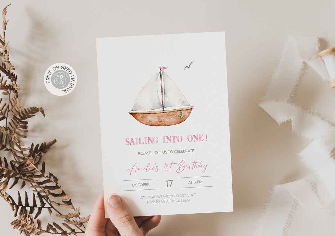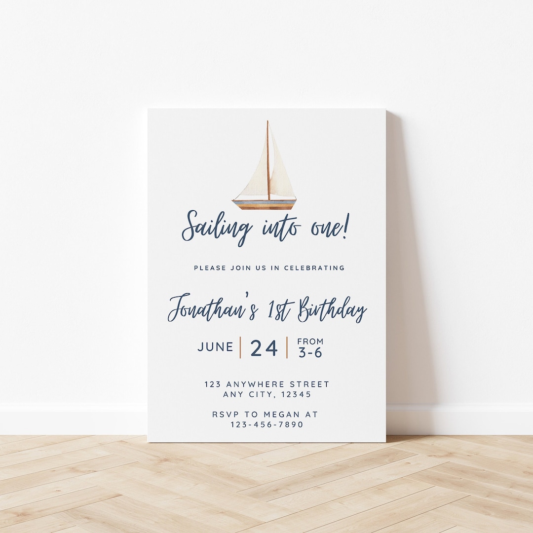 Sailing Into One 1st Birthday Invitation, Editable Sailboat Birthday ...