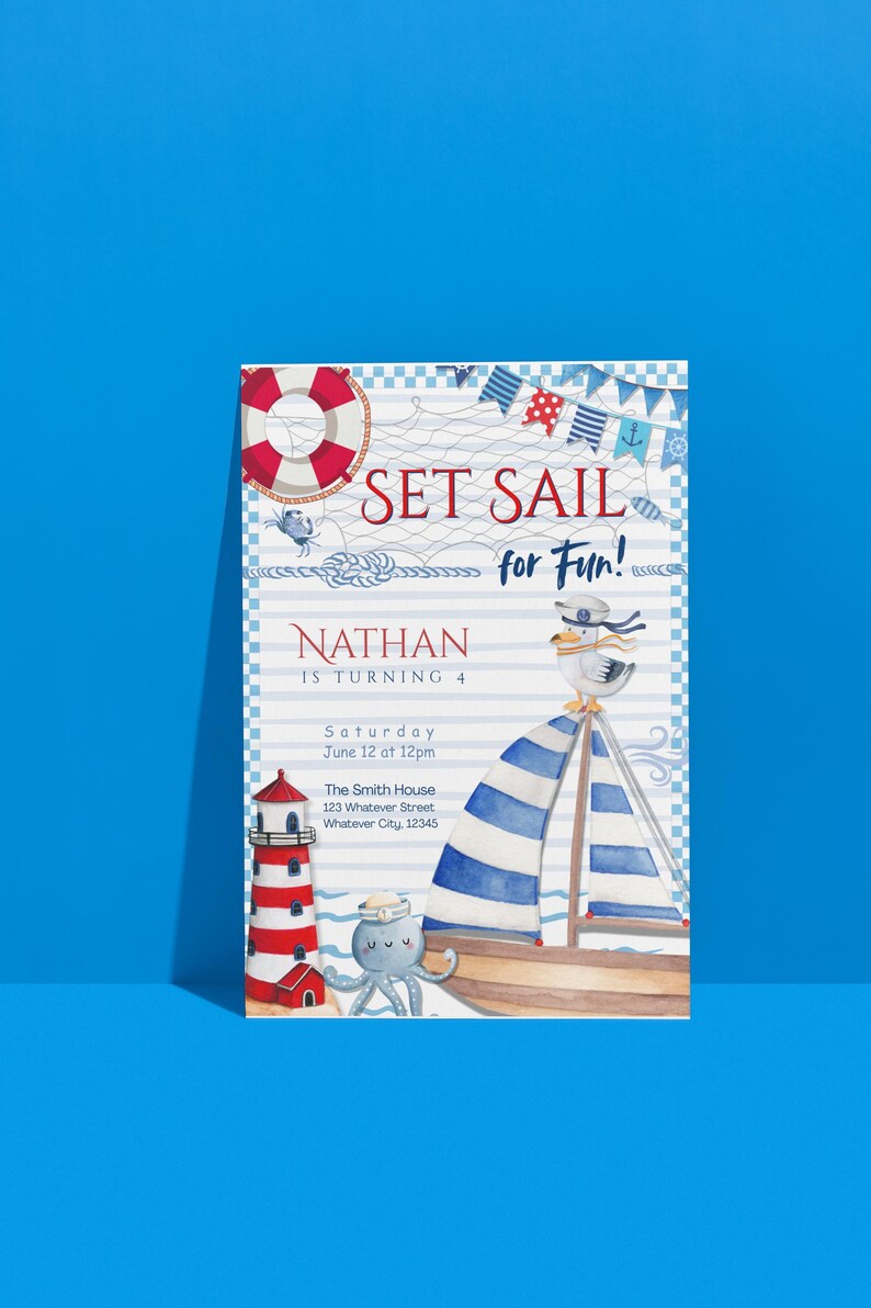 Editable Sailing Invitation, Any Age Nautical Invite Template, Marine ...
