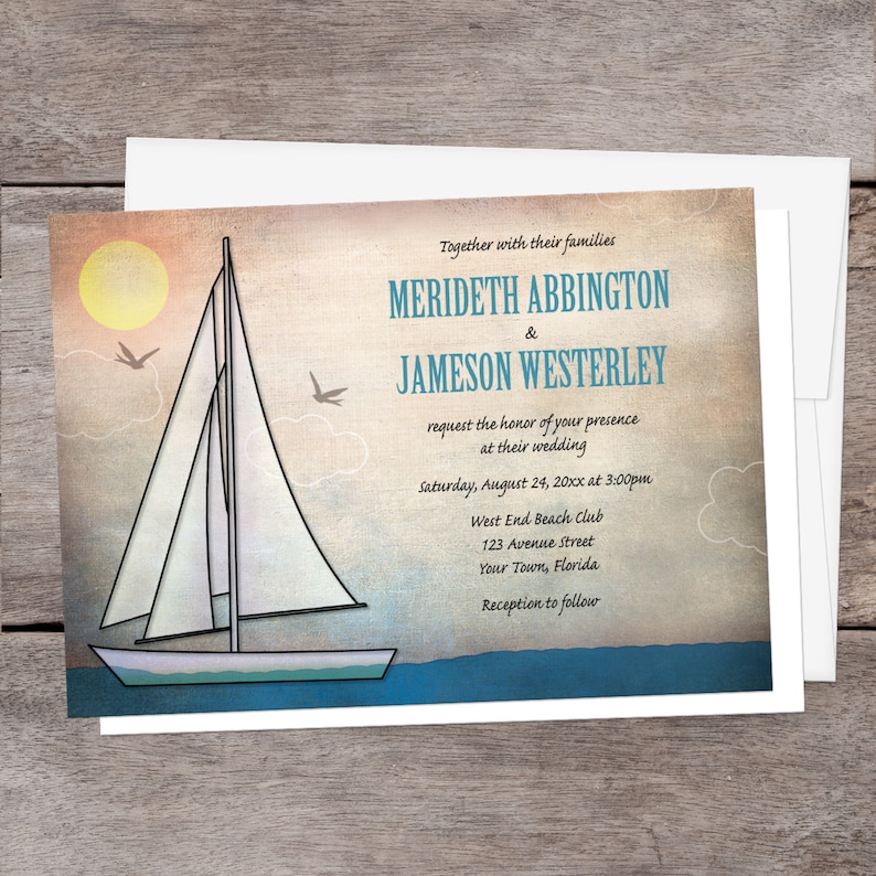Nautical Wedding Invitations Rustic Sailboat at Sea Sailing - Etsy