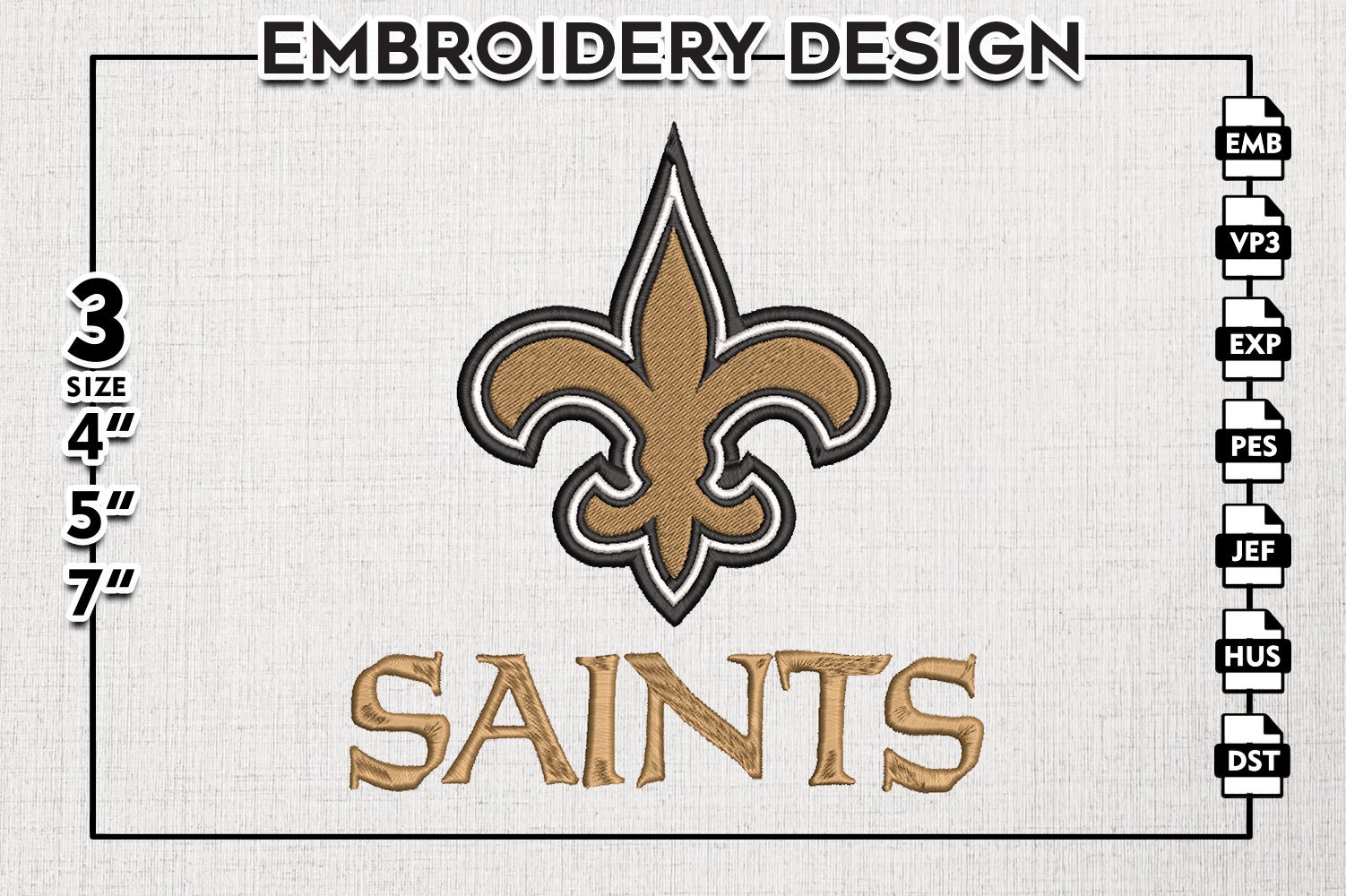 New Orleans Saints Logo Embroidery Design Files, NFL Saints, NFL ...