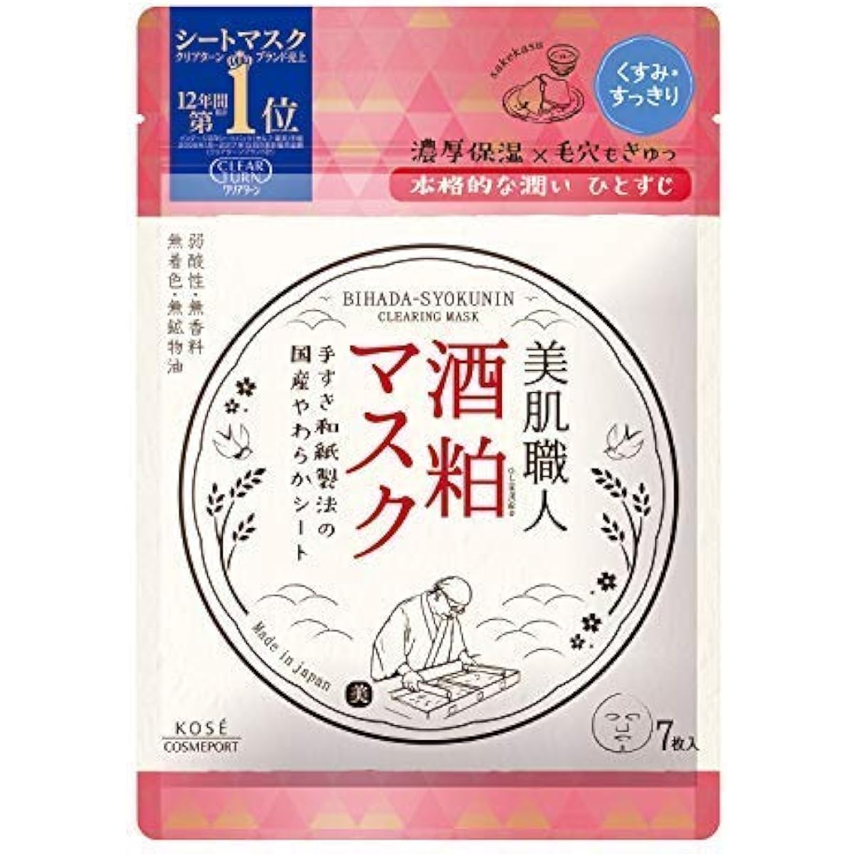 Kose Clear Turn Bihada-Syokunin Sake Lees Face Pack Mask 7 Sheets ...