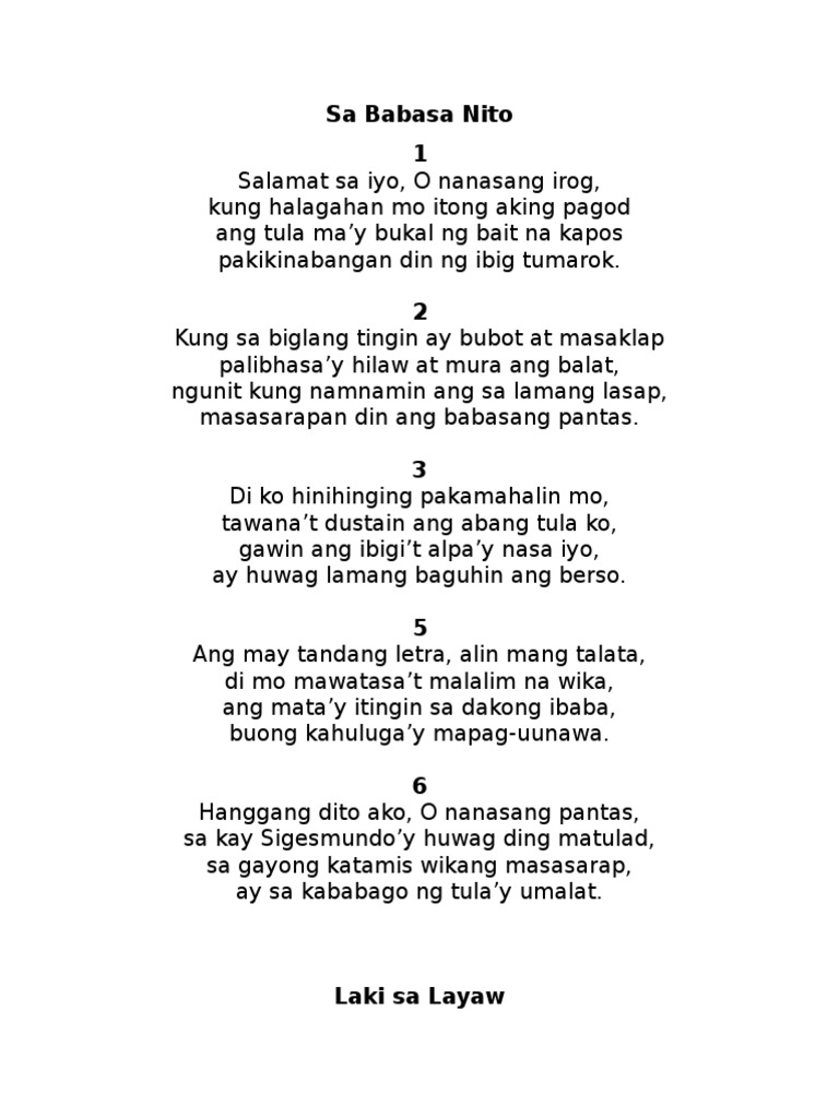 Mga Dating Tula Tagalog Na May Tatlong Saknong At Apat Na Taludtod ...