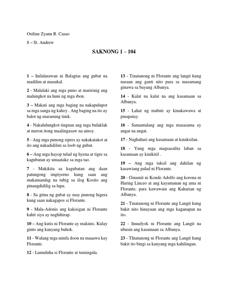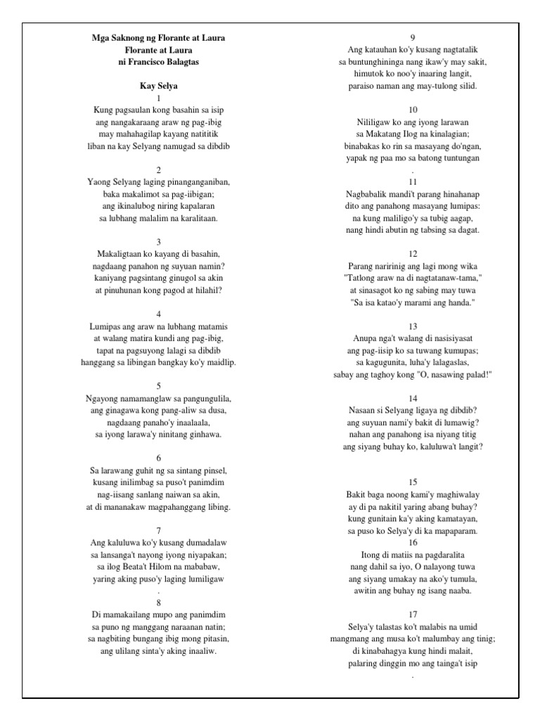 Mga Saknong Sa Florante at Laura | PDF