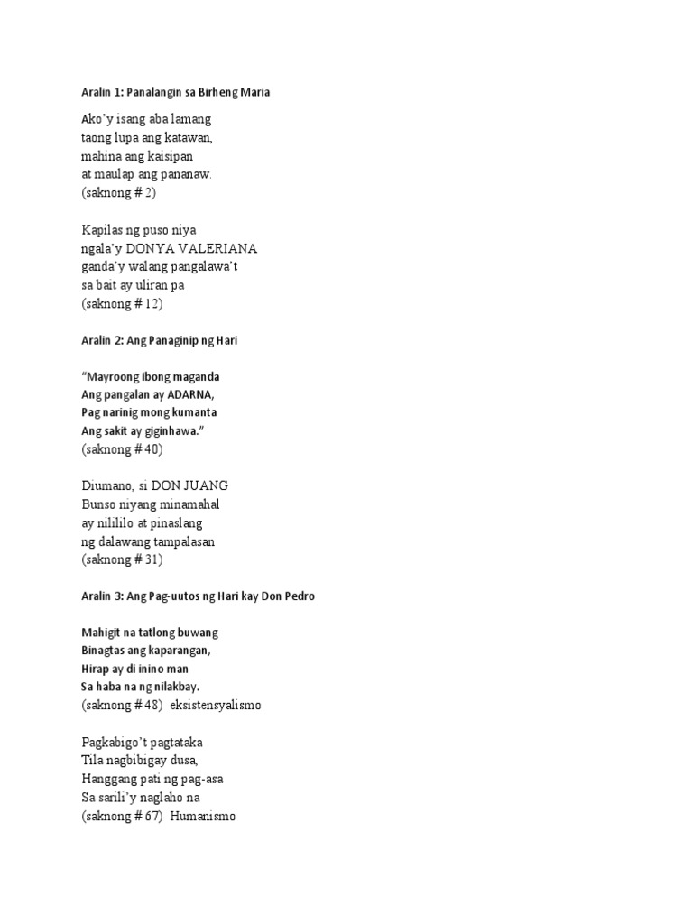 Mahahalagang Saknong Sa Florante At Laura PDF, 60% OFF