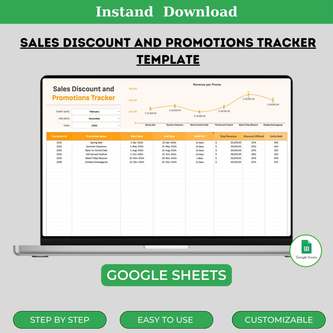 Sales Discount and Promotions Tracker Template, Digital Download ...