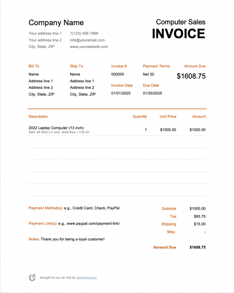 Sales Invoice Template – PreWrite