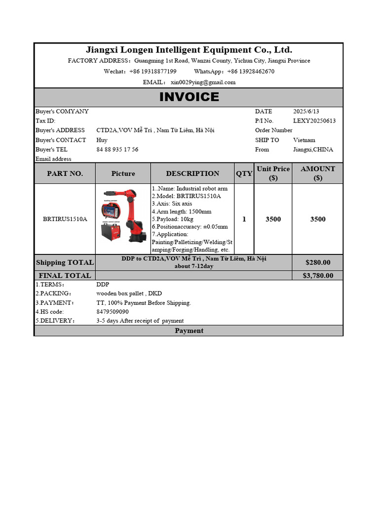 LONGEN Robot Invoice Huy | PDF | Business Documents
